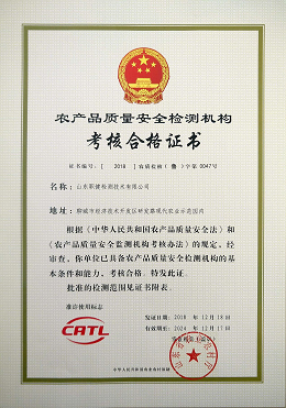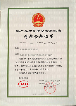 農產品質量安全檢測證書